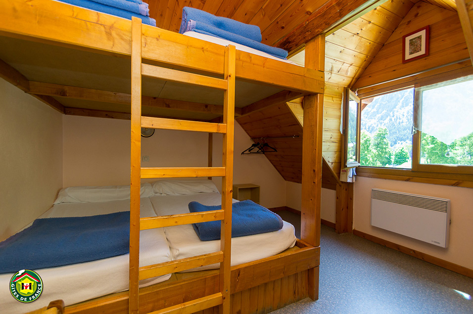 Petit dortoir en bas-flancs pour 4 personnes dont 2 personnes superposées | Sanitaires collectifs sur le palier